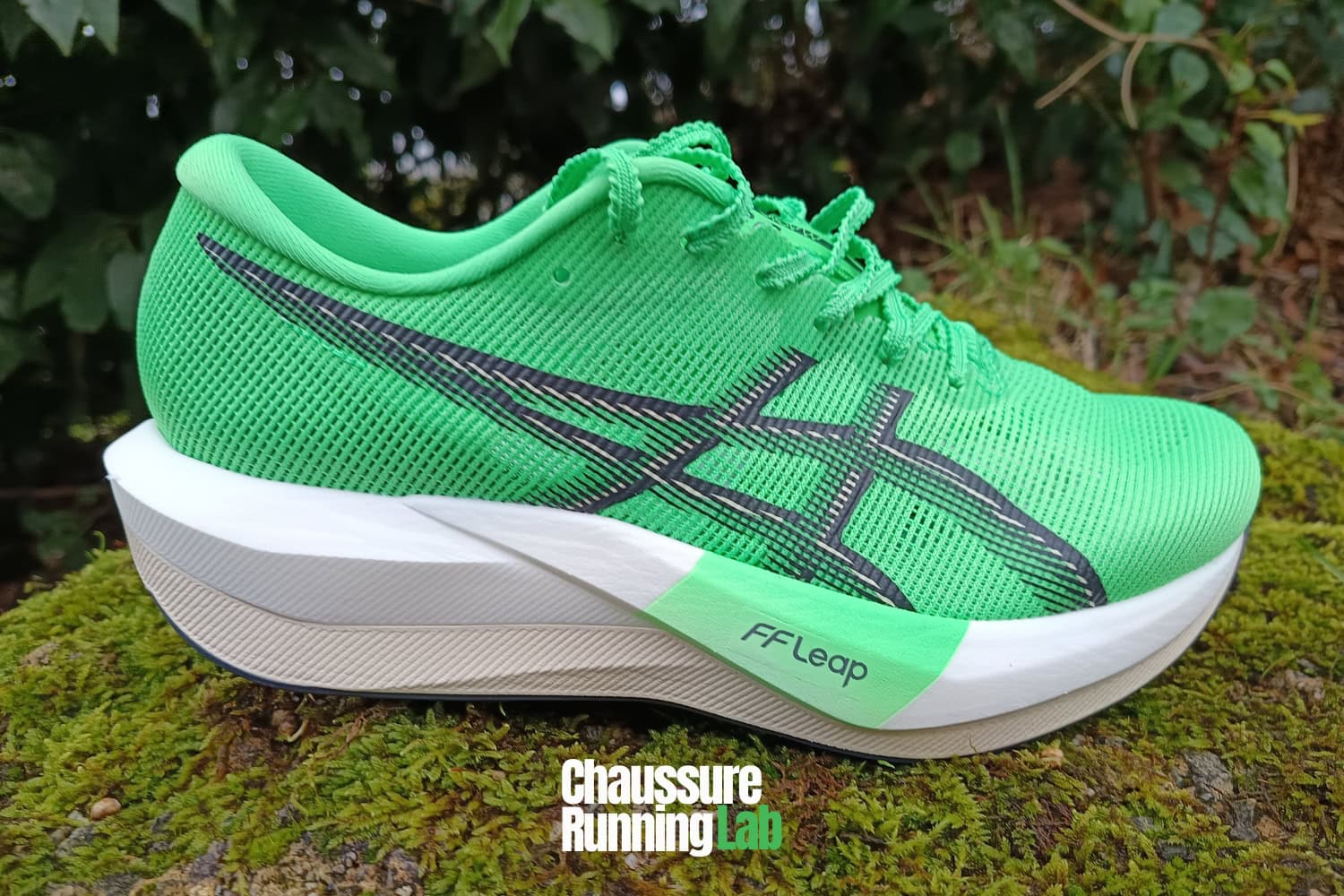 L’Asics Magic Speed 5 est une chaussure à plaque carbone pour l’entraînement. Cette nouvelle version est moins amortie mais plus légère et plus réactive.